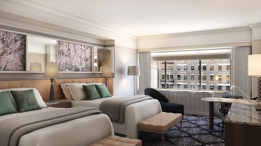 The crown jewel within The Ocean Suites complex is the 10,000-square-foot four-bedroom Penthouse Suite, spanning the entire 40th floor and boasting wrap-around balconies with 360-degree Miami Beach and city views, a gourmet kitchen, two living rooms, and an impressive 3,000 square-foot rooftop terrace with private infinity swimming pool and Jacuzzi.